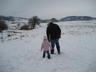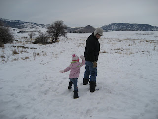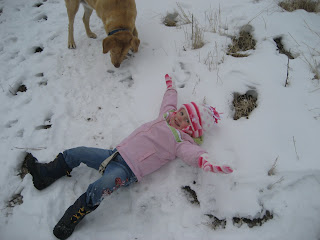 We just got back from a long weekend in Idaho. Shelby and Mama braved the cold weather and enjoyed a relaxing weekend with Grandpa (Papa) John and Grandma (Mama) Shelley. The cold weather, excessive amounts of snow and bone-chilling wind didn't bother Shelby. She wanted to play outside, visit the cows, and tromp through the "spooky forest."