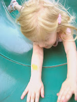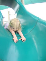 It's no secret Shelby loves to be outside. She loves the sunshine. She loves flowers. She's fascinated with bugs. And she adores the park. It doesn't matter what park, just as long as it has some swings and a slide. Since the winter chill rolled out of Vegas, the weather has been perfect -- not too hot, not too cold. Park weather indeed. So with the conditions so great, Shelby and Daddy have been spending lots of time at the park. Shelby is quite the little dare devil. It doesn't matter how high the slide is, she'll tackle it. And if she's swinging, the higher the better.