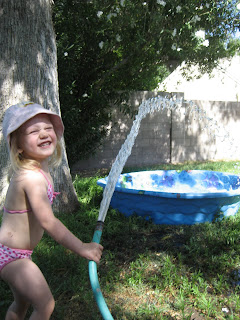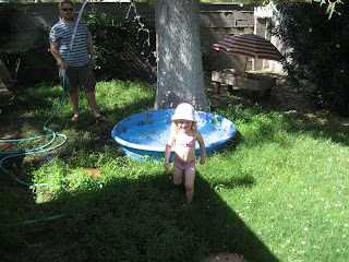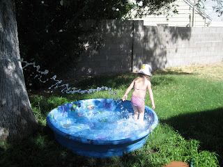 But after the game, we didn't want to waste the great weather and sunshine. We stopped at the grocery store and bought Shelby a plastic pool. She loved it. She begged mommy to join her (I did) and Shelby said the water was "quite refreshing" (it was)!