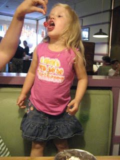 There's a little ice cream shop, Austin's Old Fashion Ice Cream, which has been serving up cold treats the Tucson residents since 1959. It's one of those cute little places you must visit at least once while you're in town. We took Shelby there last week as a reward for being such a good girl and listening like she should. She was so excited to get her own sundae complete with a cherry on top. She picked chocolate ice cream ... no surprise there, she LOVES all things chocolate. Good family fun was had by all!
