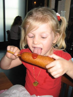 Even though the game was somewhat of a nail-bitter (no scoring, D'Backs down, and they rally for a big win late in the game), Shelby's favorite part was when we took her to the kids' play area. She ran around like a wild woman with all the other kids and had a blast. Then we went shopping and Shelby picked out some D'Back pom-poms for her "prize" for being so well behaved. And we got the cutest little baby boy outfits for our friends in Las Vegas, Stacy and Glenn, who welcomed a new baby boy into their family earlier this summer.