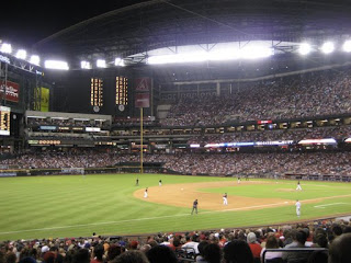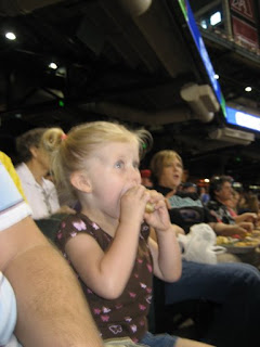 At the game, Shelby loves to chow down on hot dogs ... she can put away more than one, sometimes up to three. And she loves cotton candy, but what kid doesn't? I think more than anything, she really likes all the excitement and energy. Saturday night's game was awesome. The D'Backs owned that game and played like rock stars. It was so much fun to watch, especially since the stadium was so alive and the team was playing with such confidence. After that, Sunday's game was a little bit of a disappointment. The D'Backs got creamed by the Dodgers and it didn't even seem like they tried. Not the same team we saw Saturday night. We left early and went to the Costco Home in Tempe, which is on the way home to Tucson, and bought some awesome bar stools. Our family room and kitchen area is complete!