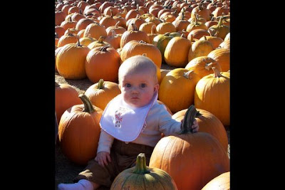 Here's Shelby when she was 6 months old at Lombardi's, sitting in a sea of pumpkins. They had a train that would take you all around the patch. And there were all sorts of scarecrows along the way. Shelby crawled around the pumpkins and had a great time with Emma and Gracie. At least she got a chance to go to one of my favorite places in the world at least once.