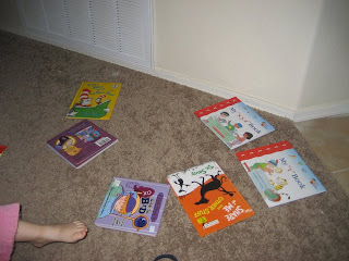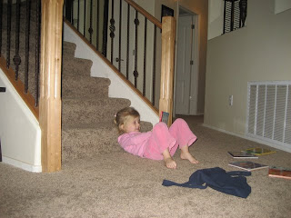 I found Shelby and a pile of books at the bottom of our stairs tonight ... she was mesmerized by a book about a little pirate.