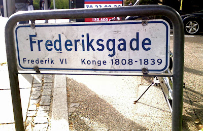 The street signs here in Aarhus are a little different than the signs at home. I found this one on a street near my hotel when I catch the bus each day. Instead of hanging from above, it's planted there on the corner. I walk by this sign and on this street all the time while in Denmark.