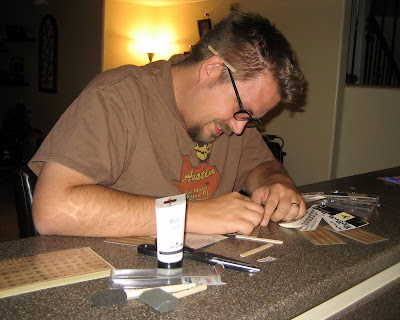 Tonight Mike raided my crafting supplies. Anyone who knows him, knows he loves making mix CDs. It's a bit of an obsession with him. He's always working on a mix. Usually he has multiple mixes in the works.