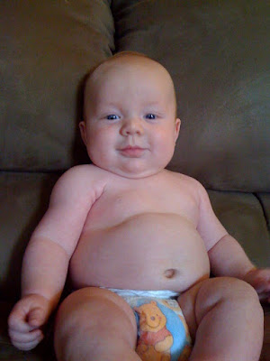 I'm a couple days late posting this, but here's a look of Cooper at the three month mark (July 4). To say he's a big boy is an understatement. He's HUGE. We go back to the doctor next week, so I'll be able to post his stats then, but I suspect he's getting close to 18 pounds.