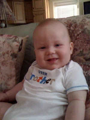 He seems to be slowing down a bit on the weight gain, but he's quite a bit longer than before. He seems to big to me! The big news regarding Coop is he cut a tooth and then another right after. So now he has two little bottom teeth.