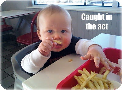 Cooper went to In-n-Out yesterday. It was his first trip. For his California raised Mama, this is a big deal. While there ... Coop discovered french fries. He kept stealing them from Shelby, Gwen and Miss Jamie (our nanny). He is eating everything he can get his little hands on. I suspect he'll hit the 30 pound mark sooner rather than later! He's one big and hungry little boy.