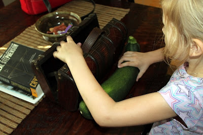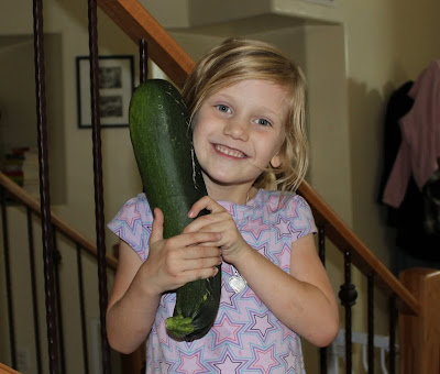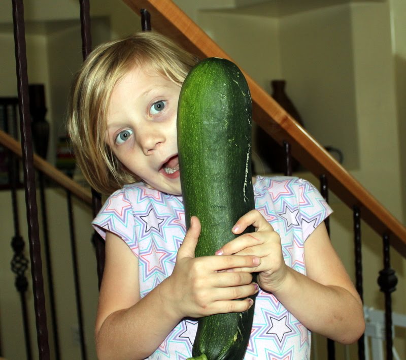 It's important to note that we did nothing special with our garden. No fertilizer. No special tricks. Just water and sunshine. Shelby carried this sucker around the house like a baby until Daddy got home so she could show him our very fist zucchini.