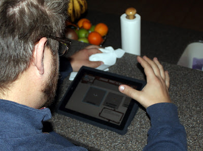Mike (photo above) will kill me for telling anyone this (but I will anyway ... ), but he's obsessed with an application on the iPad that's basically Farmville with Smurfs. He made the mistake of showing the game