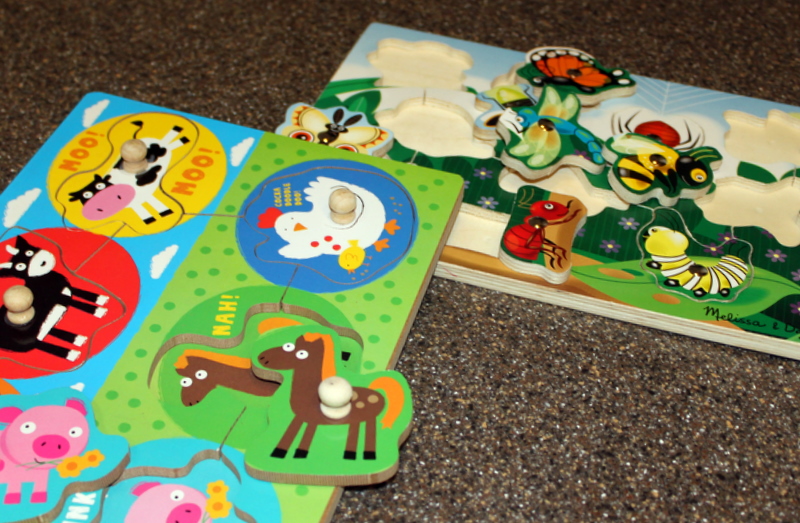 Cooper has really gotten into doing simple puzzles. He can spend 15 to 30 minutes at a time playing with these puzzles. He gets so excited when he gets a piece to fit correctly and claps and cheers for himself. When we were doing some Christmas shopping this weekend, Shelby picked out a puzzle for Cooper that makes animal noises when you take each piece out. She can't wait to give to him! It might be hard to keep her from giving it to him before Christmas Day.