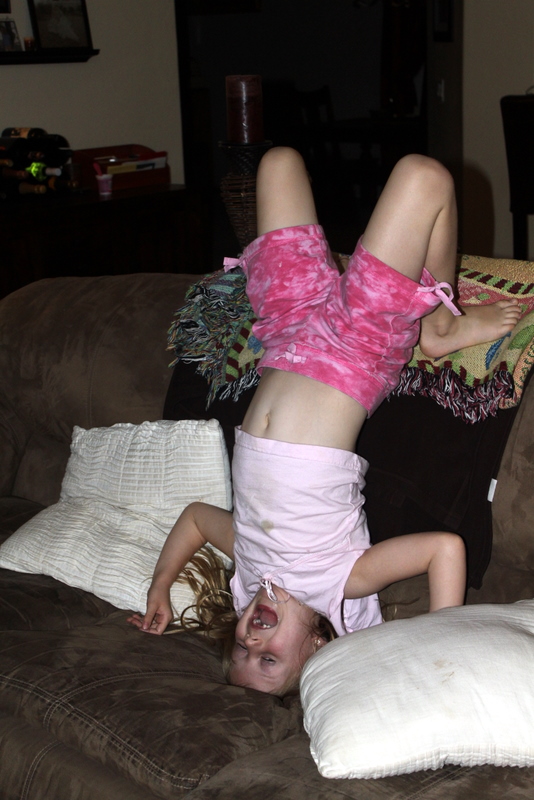 Here's Shelby, on her head, as she watches Eloise! What a nut she is, but a sweet, funny little nut.