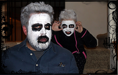 We've been to the event every year since we moved to town and Shelby loves it. In her words, "It's magical." This year we did something a little different ... Mike and Shelby painted their faces to fit in with the other parade participants. Cooper and I stayed home this year (so sad) because Coop was/is fighting an double ear infection.