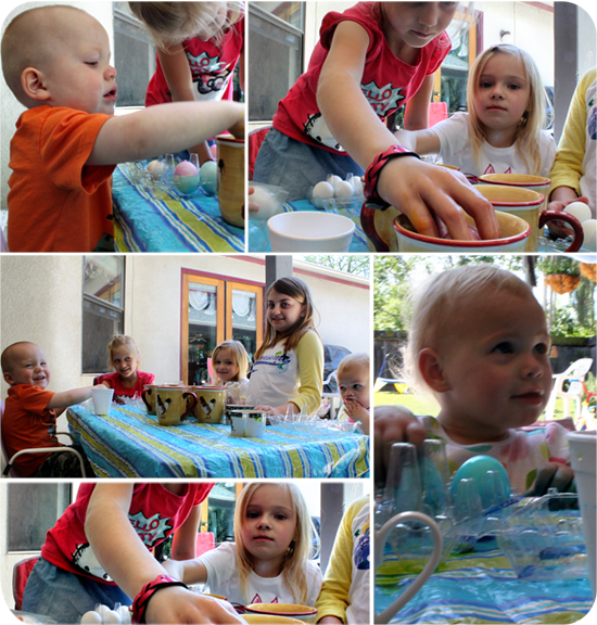 Shelby and Coop coloring Easter eggs with some of their cousins |