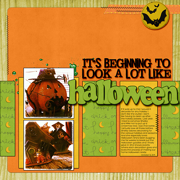 Today I created two Halloween-themed layouts. I’m not sure how much I like using themed products. I’m still on the fence.